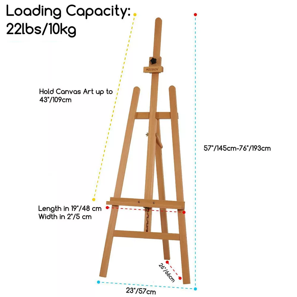 - FEKETE, NAGY TERHELÉSŰ FESTŐÁLLVÁNY: Nagy méretű festőállvány - 58,4 cm hosszú, 66 cm széles, 144,8-193 cm magas / Akár 109 cm magas vászon is befér / Maximális terhelhetőség - 10 kg / Összecsukott szélesség: 10,2 cm. A vastag háromszög alakú szerkezet stabilan tartja a vásznat, így Ön jobban tud koncentrálni a festésre.
