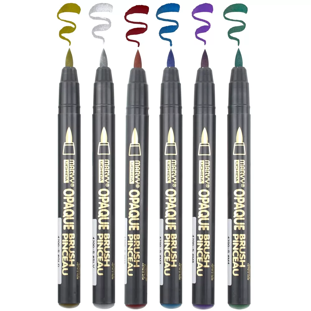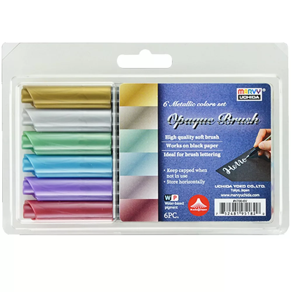 Filckészlet, Ecsetfilc, Metál - Marvy Uchida Set 6pcs Opaque Brush Marker, Assorted Metallic