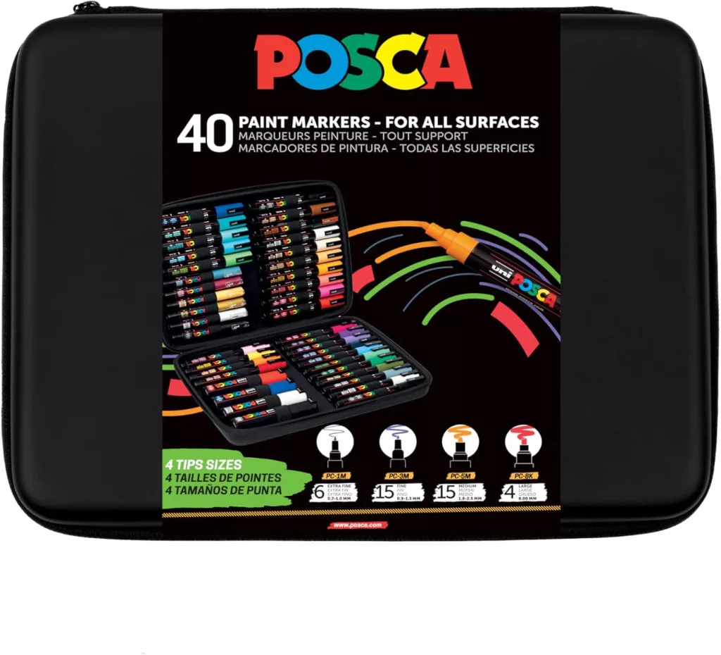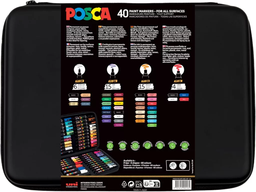 Posca filc készlet, Nagy - Uni Posca 40pcs Acrylic Paint Markers Large Set in Zipp-Case - 40pcs