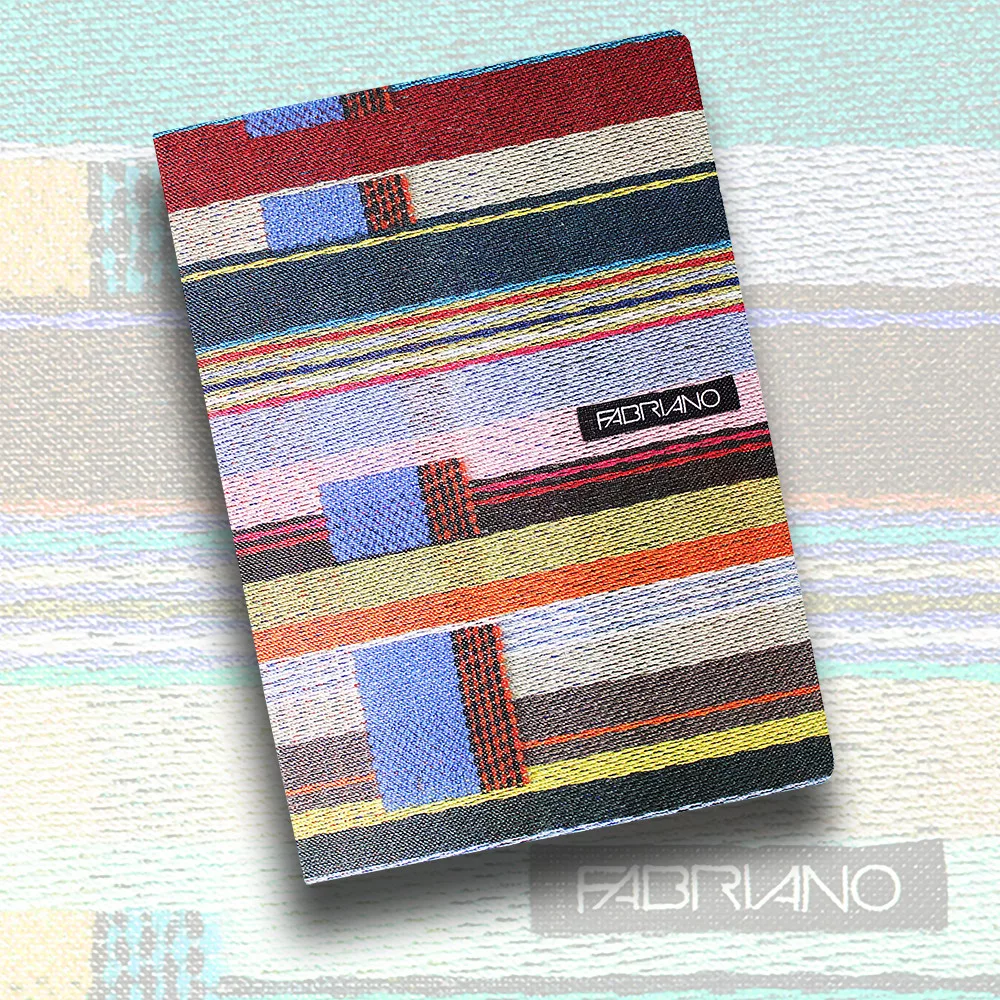 All the softness of wool, delicacy of silk, and colourful geometric patterns are reinterpreted and enhanced on Fabriano paper. The notebooks are Refe-thread bound (in different colours depending on the cover) with open, visible spine that allows 180° opening. The covers are Fedrigoni Brossulin XT 360 g/m² paper which is printed all the way to the endpaper like a real fabric cover. Inside the pages are Fabriano Bioprima Book 85 g/ m² ecological paper in a relaxed ivory shade.