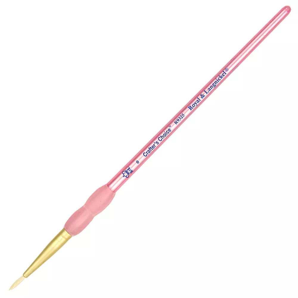These less expensive Royal Crafters Choice White Bristle Series R9111 Blunt Flat End Stencil brushes are designed with pearlized polymer handles and the Royal Brush original no slip Soft-Grip for extra comfort while painting. No more swelling, cracking, chipping or loose ferrules They make great craft brushes and ceramic brushes.