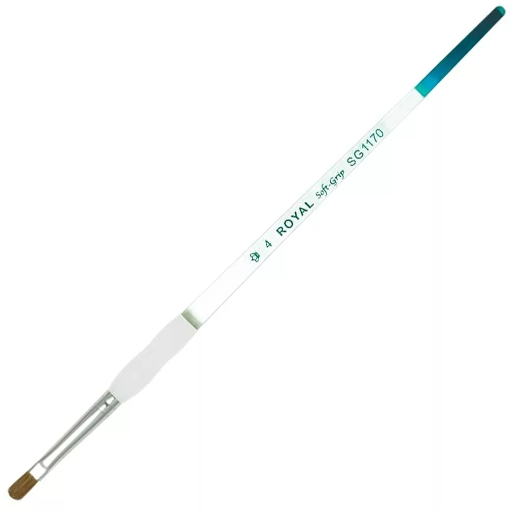 Royal & Langnickel Soft-Grip is made of natural fibre and acrylic handle with non-slip rubber grip for extra comfort. The flexible fibres provide great colour absorption while the surface roughness is perfectly moulded. The clear acrylic handle is securely attached to the brush bristles by a metal ring. Unlike wooden brush handles, this handle is resistant to prolonged soaking, will not swell from water and will not separate from the adhesive, so the brush strokes stay firmly in place.