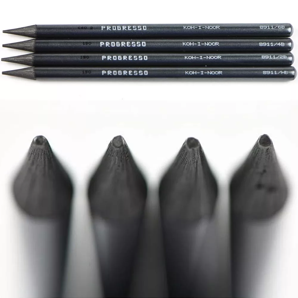A KOH-I-NOOR Progresso (minimális kötőanyaggal ceruzaalakúvá préselt grafitpor) egy, préseltszénhez hasonlatos rúd, fa foglalat nélkül.